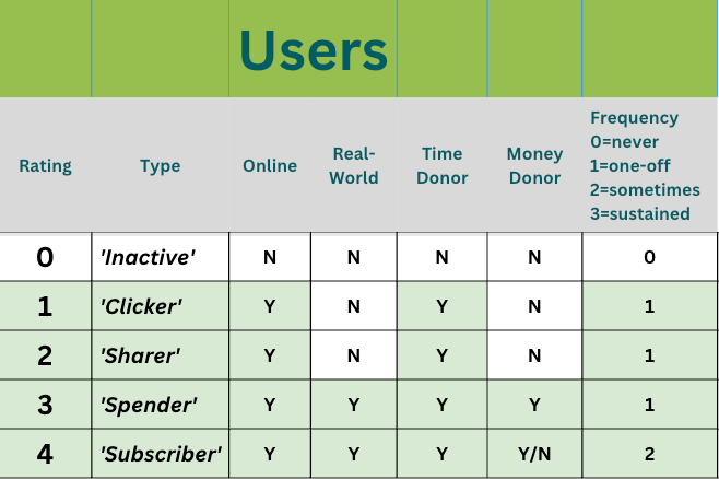NGOs call Users ‘the public’ or ‘our target audience’. Again, these might be very different depending on your particular mission: