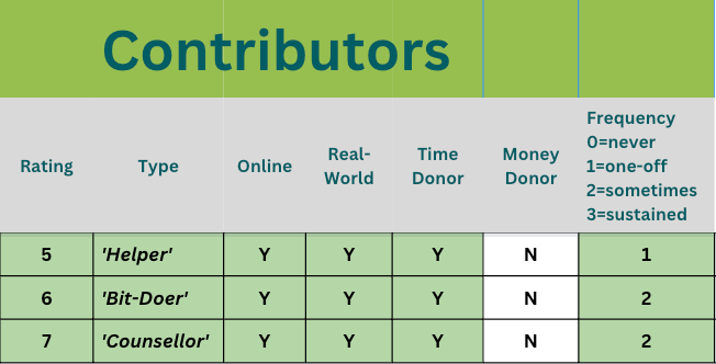 ‘Helpers’ are supporters who do more than passively respond to specified CTA, but actively help to facilitate those actions themselves, with varying degrees of frequency.